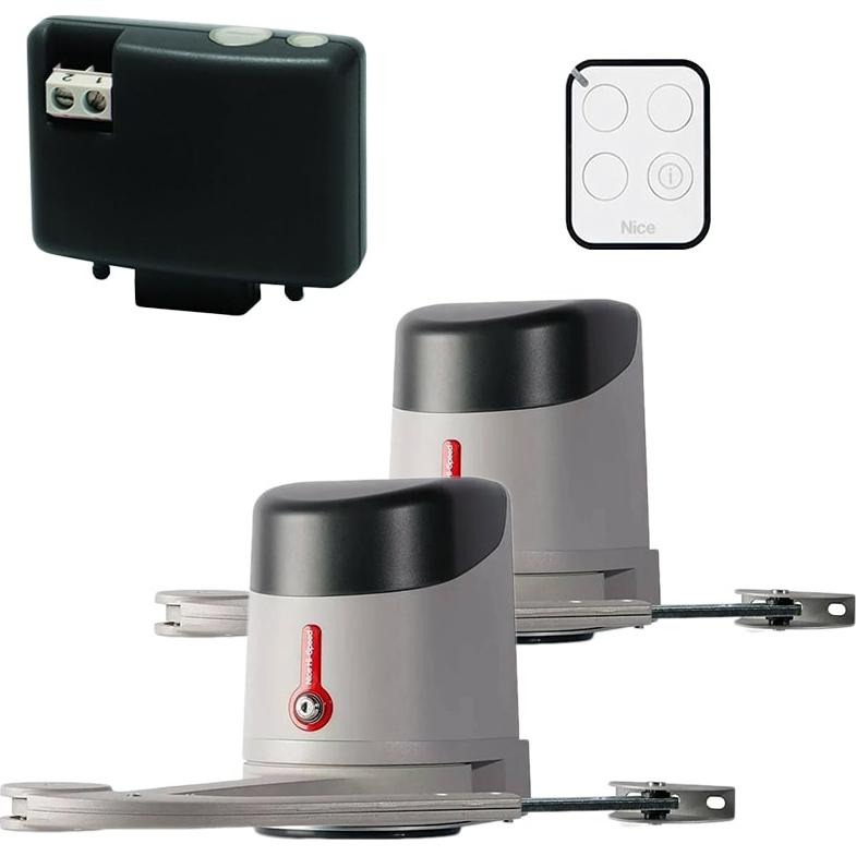 Комплект для распашных ворот HKHSBDKLT. Состав комплекта: привод HK7024HS (1 шт.), привод HK7224HS (1 шт.), приёмник OXIBD (1 шт.), пульт управления INTI2R (2 шт.)