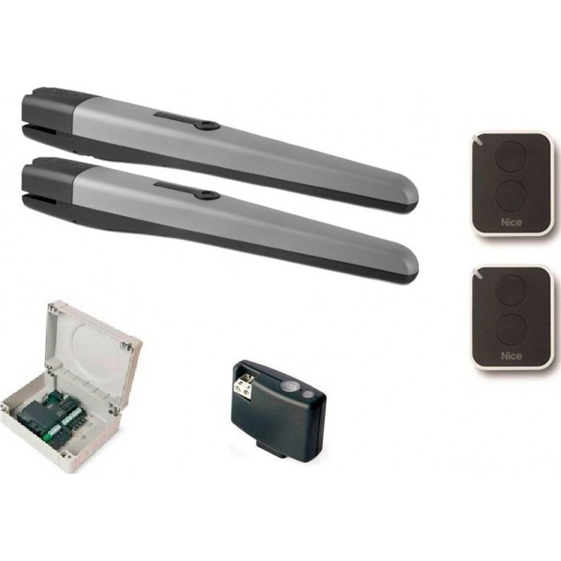 Комплект для распашных ворот TO4016PBDKCE. Состав комплекта: привод TO4016P (2 шт.), приёмник OXIBD (1 шт.), пульт управления MYGO4 (2 шт.), Фотоэлементы Medium EPM (1 пара), Блок управления MC800 (1 шт.), Лампа сигналь- ная с антенной 230В ELAC (1 шт.)