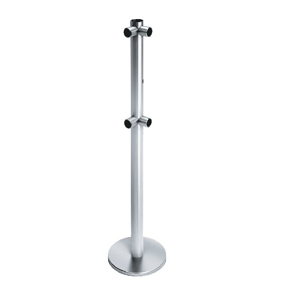 Стойка ограждения с отверстием под фиксатор 2 муфты L-образная, 2 муфты справа угол 90° передвижная