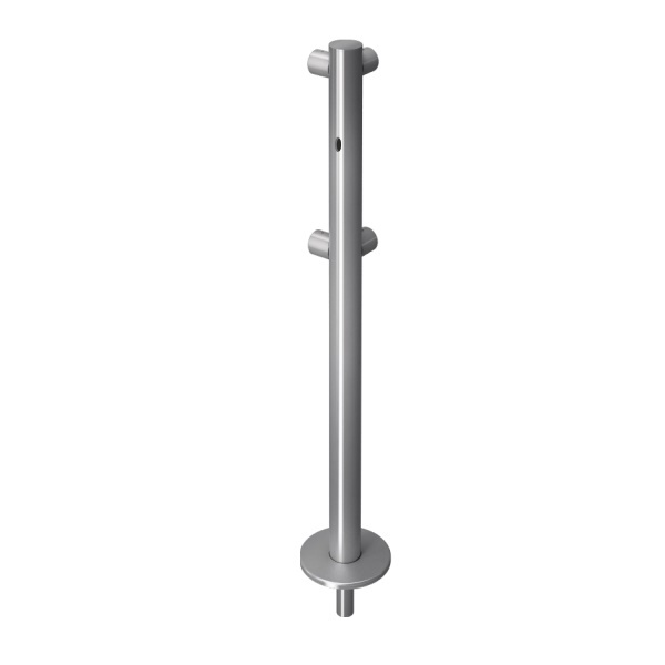 Стойка ограждения съемная L-образная с отверстием под фиксатор 2 муфты, 2 муфты слева угол 90°