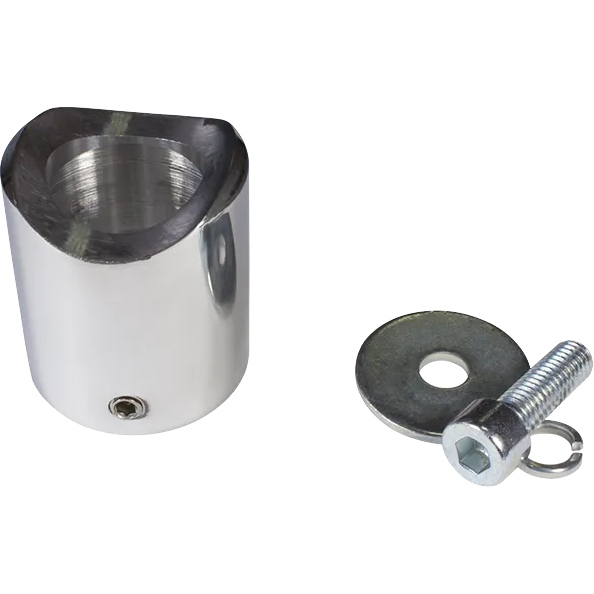 Хромированная муфта в сборе (с элементами крепления) для крепления к стойке стационарного или передвижного ограждения горизонтальной перемычки диаметром 32 мм.