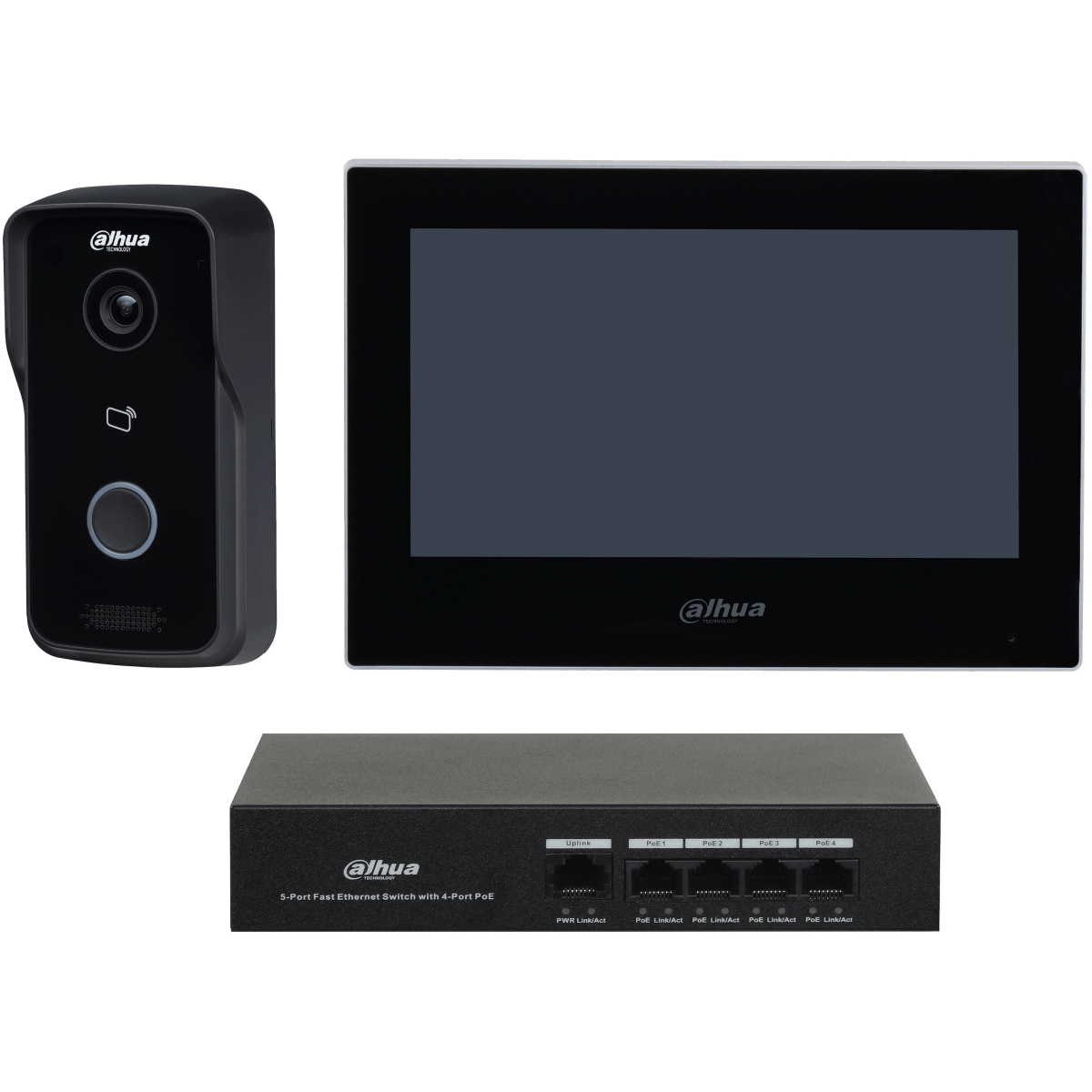 Комплект IP-видеодомофонии DHI-VTO2111D-P-S2+DHI-VTH2621G-P+DH-PFS3005-4ET-36E.