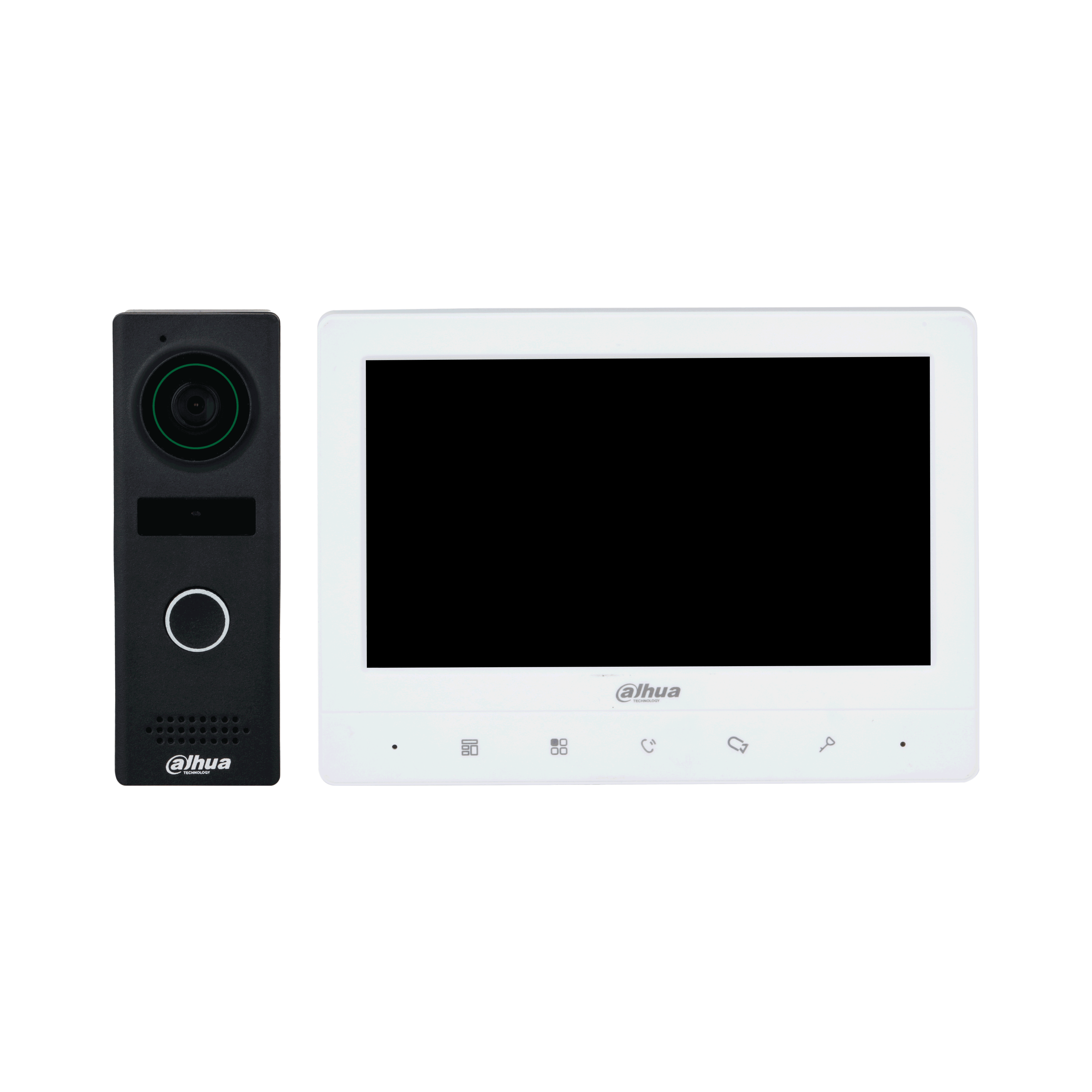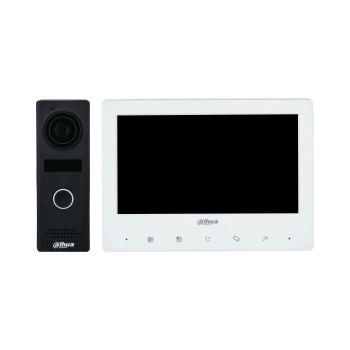 Видеодомофон-комплект. Экран TFT 7". Функции видеодомофонии: разблокировка, голосовой звонок, видеозвонок, регулировка громкости, видеонаблюдение перед дверью. Количество видеоинтеркомов: 2 дверные станции + 3 монитора. Различные звуки звонка. Поддержка цифрового широкого динамического диапазона (DWDR). Снимки.