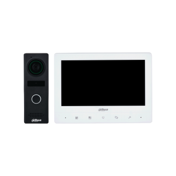 Комплект видеодомофона Dahua DHI-KTA03M с цифровой видеокамерой 1.3Мп. Состав: DHI-VTH1020J-T: Монитор видеодомофона 7" и DHI-VTO1000JM: Вызывная панель с разрешением камеры 1.3мп и CMOS сенсором.