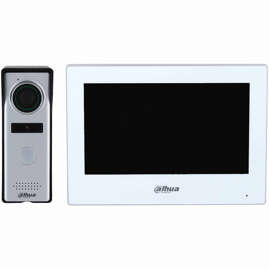 Комплект видеодомофона Dahua DHI-KTH01: DHI-VTO1000J: 4-проводная вызывная панель 1.3Мп и DHI-VTH2624GW-WP: 4-проводный 7" монитор видеодомофона с WiFi.