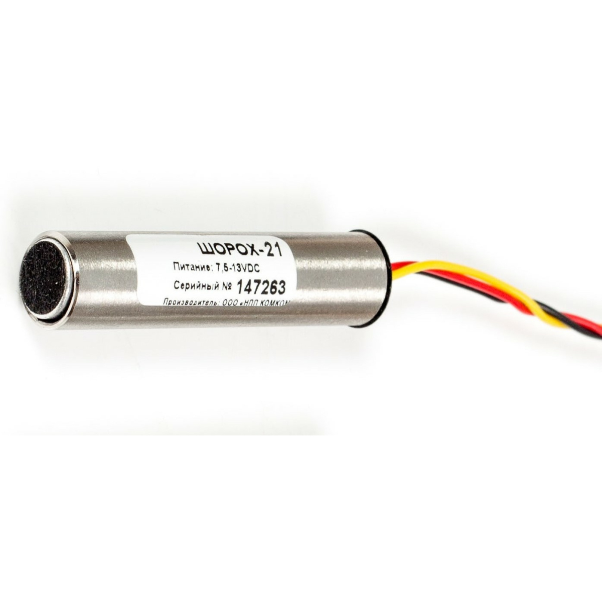 Высокочувствительный (ВУЧ), активный, миниатюрный микрофон c быстродействующим АРУ. акустическая дальность до 18 м. уровень сигнала (выходное напряжение) 0,6 В. экранирующий металлический корпус. максимальная длина линии 300 м. площадь покрытия от 60м.кв. напряжение питания 7,5 … 14,8 В DC, ток потребления 7 мА. габариты D12xD35 мм. Диапазон рабочих температур -10C … +50C.