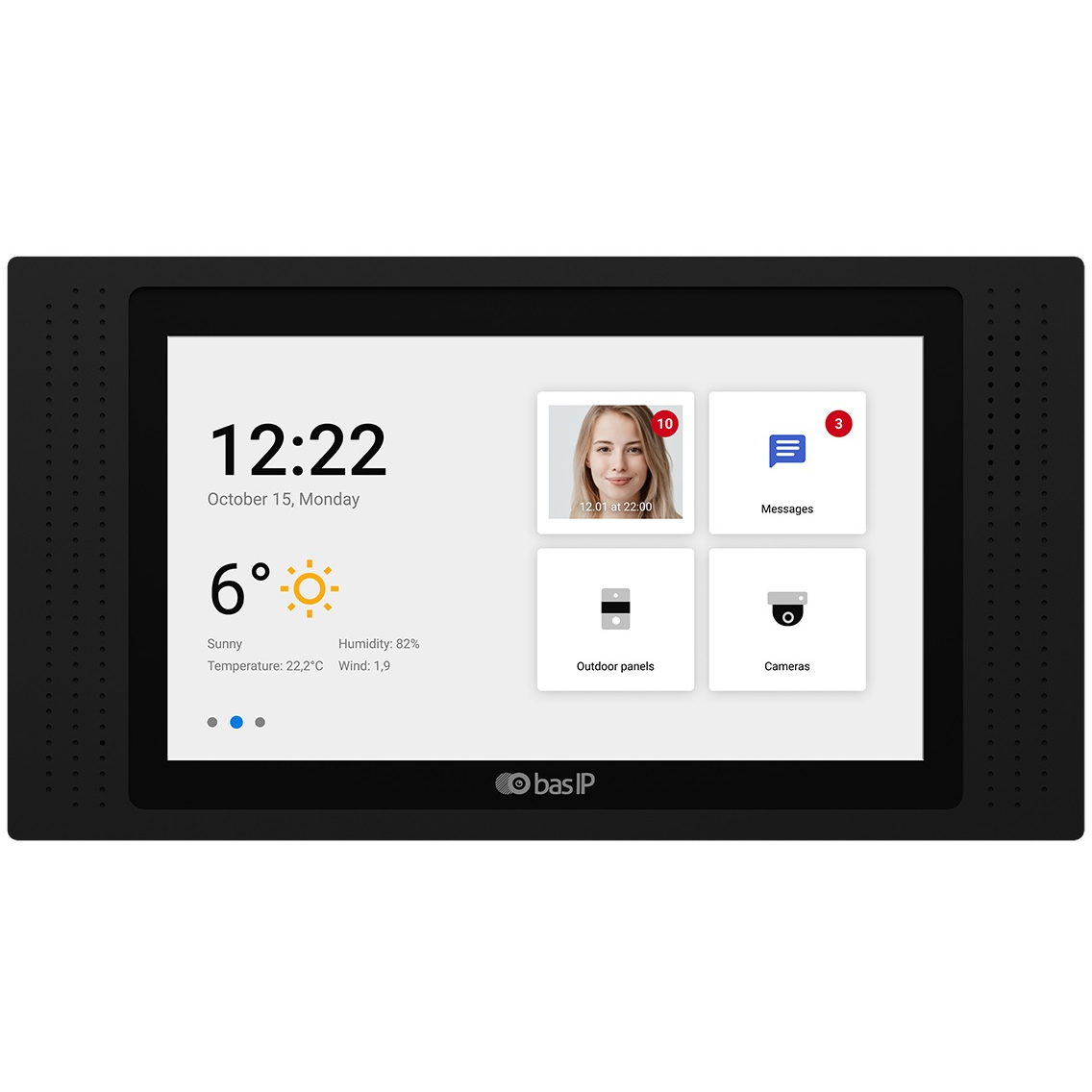 Видеодомофон индивидуальный с сенсорно-ёмкостным экраном 10" IPS, разрешение: 1280x800, c внутренней памятью (фото, видео на автоответчике), с возможностью подключения датчиков сигнализации, фоторамка, проигрыватель видеофайлов, умный дом. Без камеры. Подключение кнопки звонка. Управляемый выход при поступлении входящего звонка, возможность установки сторонних приложений и приложений для "Умного дома". Встроенный Web-браузер. Просмотр до 32 камер. Питание: PoE и + 12В (БП в комплект не входит). Поддержка: SIP P2P. Встроенный Wi-Fi (2.4GHz, IEEE 802.11 /b/g/n). Интеграция с АСКУЭ. Накладной монтаж и врезной монтаж с помощью дополнительного кронштейна. Цвет - чёрный.