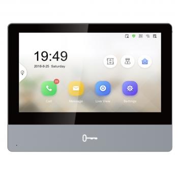 7“ IP видеодомофон 7" цветной TFT LCD экран с разрешением 1024*600; сенсорные кнопки; встроенные микрофон и динамик; слот для TF карты до 32Гб; тревожные входы/выходы 8/2; 1 RS-485; 1 RJ-45 10M/100M Ethernet; DC12В/PoE; 10Вт; -10 °C...+55°C; размер 195.8×132.8×17.5мм.
