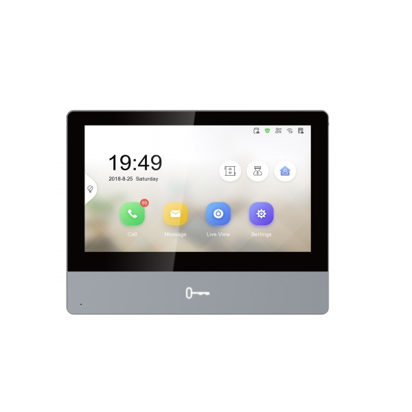 7“ IP видеодомофон с WI-FI. Дисплей цветной LCD IPS; сенсорные кнопки; встроенные микрофон и динамик; слот для TF карты до 32Гб; тревожные входы/выходы 8/2; 1 RS-485; 1 RJ-45 10M/100M Ethernet; DC12В/PoE; 10Вт; -10 °C...+55°C; размер 195.8×132.8×17.5мм.