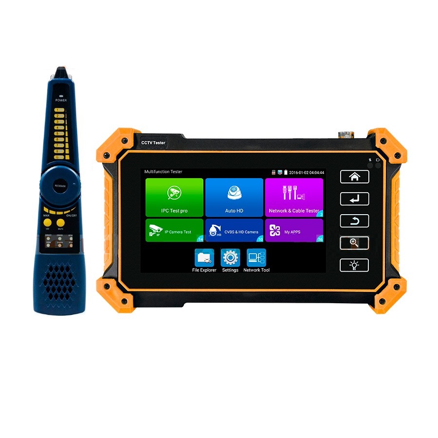 Универсальный монитор-тестер AHD/CVI/TVI/CVBS и IP-видеосистем. (Базовая модель + детектор кабельной трассы). Возможности: Поддержка ONVIF; 8Mp TVI, 8Mp CVI, 8Mp AHD; Доступ в Web-интерфейс камеры с помощью встроенного браузера; Android - Приложения для управления камерами c возможностью самостоятельной установки/удаления ПО; Audio/Video плееры; Запись аудио/Video потоков, скриншотов на карту памяти; Кабельный рефлектометр с интерфейсом RJ-45; измерение уровней видеосигнала, генератор тестовых таблиц; проверка UTP-кабеля; тестирование IP-сетей; RTSP; измерение РоЕ-напряжения; генератор CVBS; PTZ-управление; Мониторинг интерфейса RS485; источник питания PoE (48V, 24Вт); источник питания DC12V/3А. Разъемы: 2хRJ45; HDMI и VGA входы; BNC; клеммы(RS485); jack 3,5мм вход, слот MicroSD. Характеристики: Разрешение экрана - 5" 1920x1080; Wi-FI IEEE 802.11n 150mbit/s; Батарея Li-Pol 7,4V 3350mAh; Размеры (ШхВхГ): 183x36.5x110мм; Рабочая температура от -10°С до 50°С.