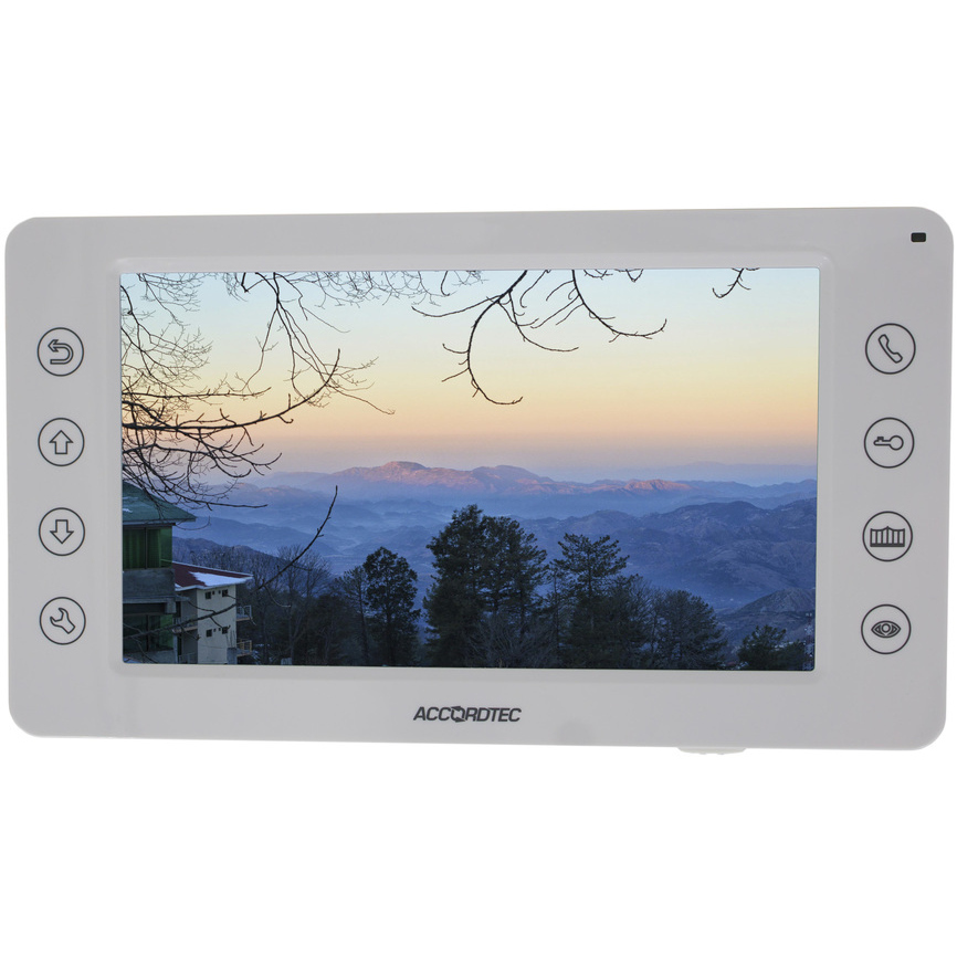 Видеодомофон 7 дюймов, Сенсорные кнопки, 1080P/720P/CVBS Подключение двух вызывных панелей и двух видеокамер.Календарь, будильник. Загрузка собственных мелодий MP3 в качестве сигнала вызова домофона. Запись видеороликов входящего вызова со звуком в автоматическом или ручном режимах, и по детектору движения. Поддержка micro SD карт (8Гб-128Гб).Адресный интерком. Открытие ворот. Накладной тип крепления. АС 220В. Белый