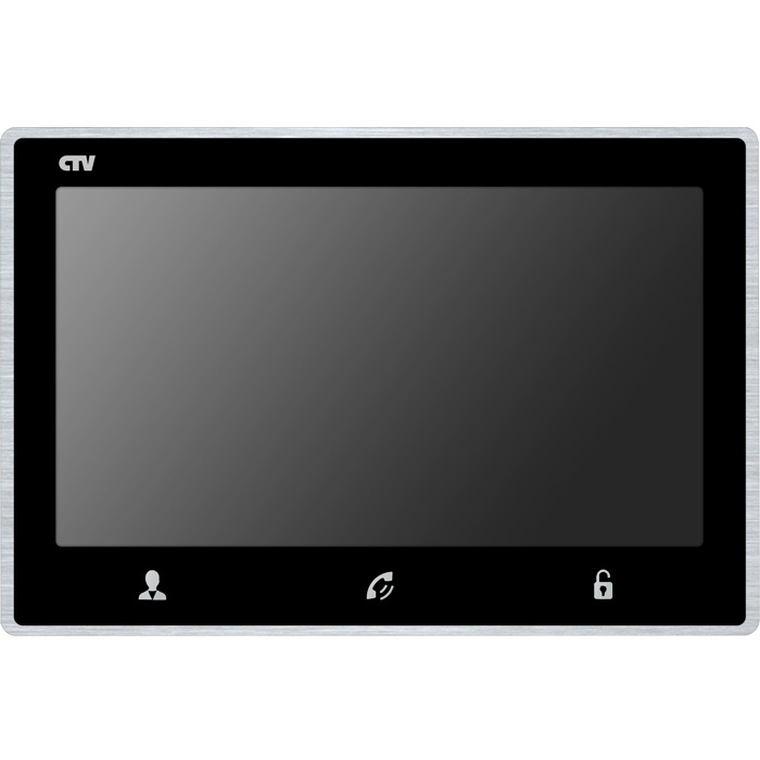 Монитор цветного видеодомофона формата AHD с IPS экраном 7", Hands free, встроенный детектор движения на 4 канала, стеклянная сенсорная панель управления "Easy Buttons", одновременная поддержка Full HD (2Мп) разрешения в форматах AHD, TVI, CVI и CVBS, автоответчик, встроенный слот для micro SD (до 64ГБ), функция фоторамки и часов, накладное крепление, встр. ист пит, подкл до 2 выз. панелей/2 видеокамер/2 датчиков тревоги/5 мониторов, цв. корпуса - черный