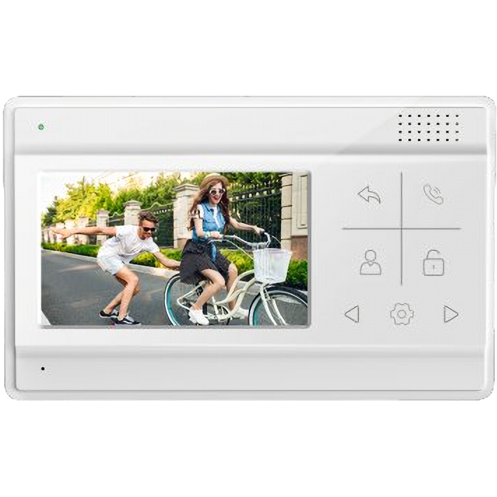 Видеодомофон: дисплей 4,3" TFT; сенсорные кнопки; подключение до 2-х вызывных панелей; OSD меню; питание AC 220В (встроенный БП). Особенность: Возможность подключения до 4-х мониторов Lira в одной системе с широкими возможностями адресного интеркома