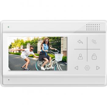 Видеодомофон: дисплей 4,3" TFT; сенсорные кнопки; подключение до 2-х вызывных панелей; OSD меню; питание AC 220В (встроенный БП). Модель адаптирована к работе с координатными подъездными системами домофонов.