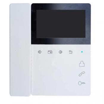 Монитор видеодомофона цветной, TFT LCD 4,3" с трубкой на магните.Возможности подключения: 4 монитора, 2 вызывные панели, 2 видеокамеры.Поддержка microSD карты, встроенный DVR с детектором движения, автоответчик (micro SD).Адресный интерком, 25 мелодий. Питание 14,5В, адаптер 220В/14,5В в комплекте.