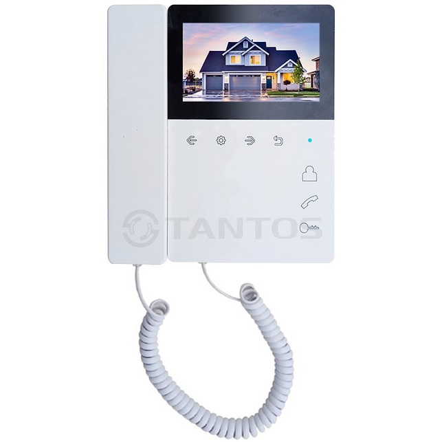 Монитор цветного видеодомофона, адаптированный для работы с многоквартирными домофонами, экран TFT LCD 4,3" разрешение 480x272, PAL/NTSC, с трубкой на магните. Питание 14,5В, адаптер 220В/14,5В в комплекте.