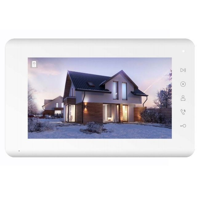Бюджетный монитор цветного видеодомофона 7 дюймов с сенсорными кнопками, с поддержкой форматов CVBS и 720p/1080p(AHD/CVI/TVI), разрешение 800х480, hands free. Питание 220В. Габариты: 205х128х18мм. Тип подъездного домофона координатный.