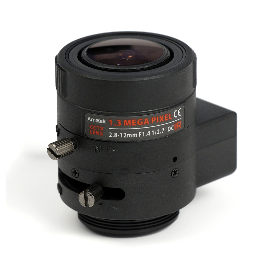 Вариообъектив для установки на камеры с разрешением до 1,3МП. Фокусное расстояние 2.8 ~ 12 мм. Формат 1/2.7 ". Крепление CS. Автодиафрагма DC. Относительное отверстие F1.4. Угол зрения на матрице 1/2.7 " (16:9): по горизонтали 32° ~ 106°; по вертикали 18° ~ 72°.
