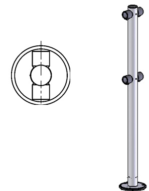 Труба D=50 мм Н=1000 мм из шлифованной нержавеющей стали, 4 пластиковые муфты с крепежом, крышка основания, скрывающая крепление стойки к полу; заглушка из черного пластика.