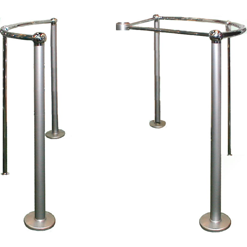Ограждение люкс. Комплект состоит из двух полукруглых горизонтальных перемычек, четырех стационарных крашеных стоек, две из которых соединены через разрезное кольцо с турникетом.
