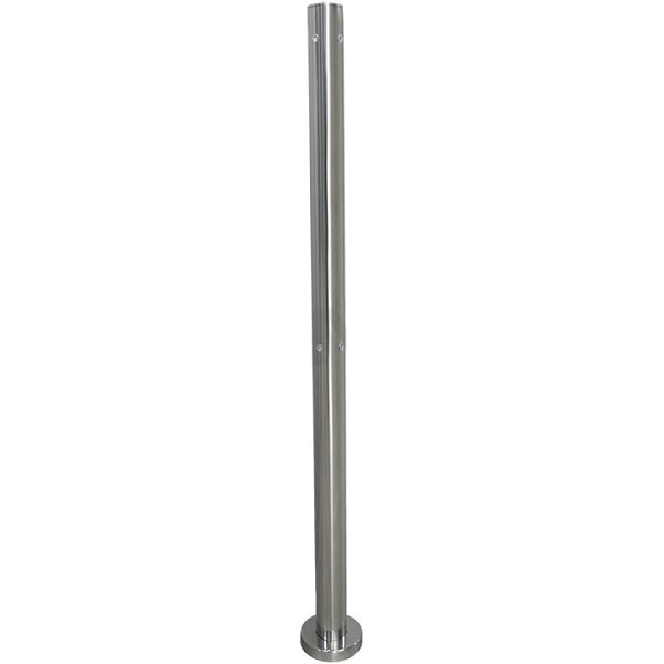Стойка универсальная 3-х сторонняя, с 6-ю отверстиями для муфт и отвертстием для фиксатора поворотной створки. Материал: полированная нержавеющая сталь AISI 201. В комплекте с декоративной крышкой и анкерными болтами. Диаметр - 50.8 мм, высота - 1000 мм, расстояние между отверстиями крепления муфт - 445 мм.