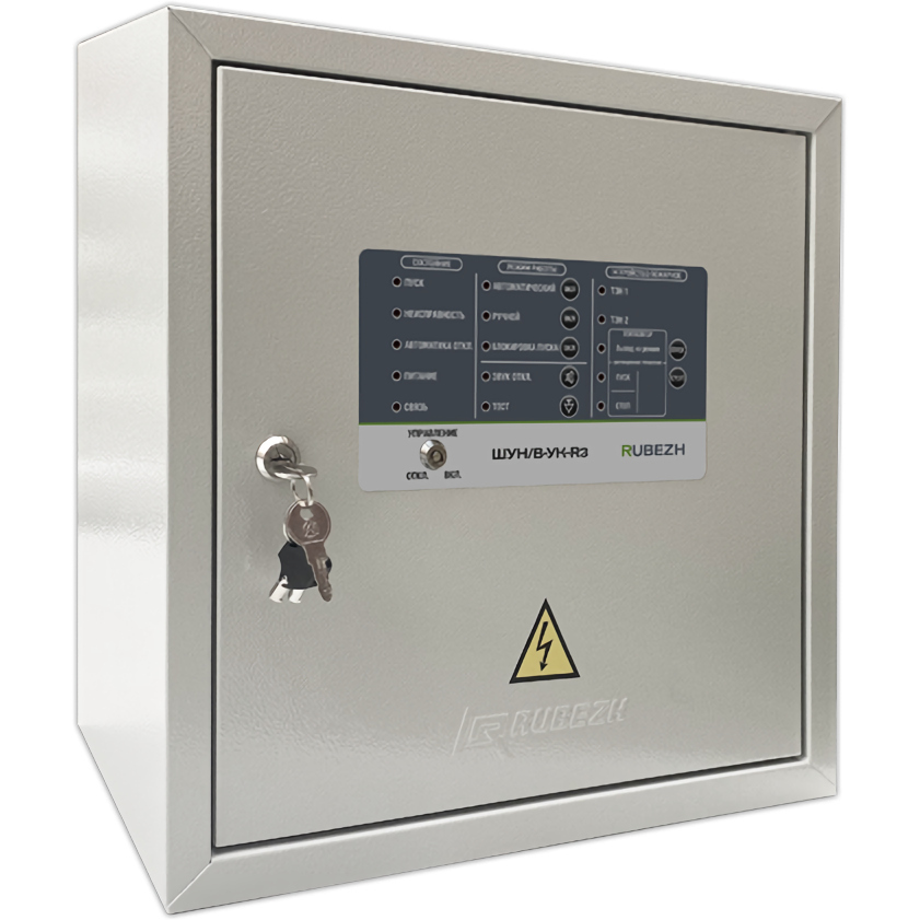 Шкаф управления пожарный ШУН/В-УК-R3 с дополнительной функцией управления ТЭНами канальных калориферов предназначен для управления работой электродвигателя вентилятора приточной вентиляции (подпором воздуха) и двухступенчатым (одноступенчатым) калорифером подогрева воздуха в системе противопожарной защиты под управлением приемно-контрольного прибора «Рубеж-2ОП» прот.R3. Назначение: ШУ - шкаф управления Н/В – насос/вентилятор. Тип электросети: трехфазная переменного тока 400 В. Мощность электродвигателя, кВт: 3кВт. Силовые элементы автоматики: производитель Dekraft, без теплового расцепителя. Дополнительные функции: управление калорифером. Мощность калорифера: от 1 до 6 кВт. Работа в адресной системе: для подключения в АЛС приборов протокола R3