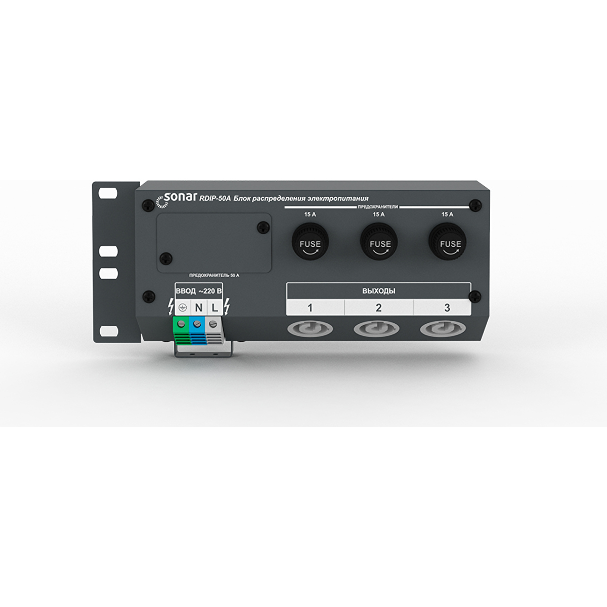 Силовой блок распределения питания по стойке оповещения, максимальный ток 50А.
