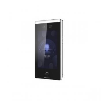 Терминал доступа с распознаванием лиц и встроенным считывателем Mifare карт. 7" цветной TFT LCD экран с разрешением 1024×600; 2 объектива 2Мп с высокой чувствительностей, WDR, ИК; Поддержка двухсторонного видео-интеркома с домофоном и пультом консьержа Hikvision; RTSP, H.264; Режим аудентификации лиц: 1:1 или 1:N; хранилище: 20000 лиц; 50000 карт; 100000 событий; Интерфейсы: TCP/IP; 1 RS-485; Wi-Fi; 1 Wiegand 26/34; 1 USB; 1 тревожный выход: 2 тревожный вход; 1 замок; 1 магнитный контакт; 1 кнопка выхода; 1 темпер; встроенный считыватель Mifare; DC12В, 3А; -30 °C...+60°C; размер 239×116.5×33мм; пластик, металл. IP65, ISAPI, E-home 5.0.
