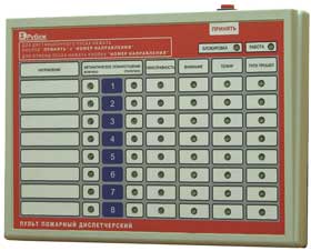 Пульт пожарный диспетчерский на 8 направлений для предназначен для отображения работы автоматической системы пожаротушения с помощью светодиодной индикации и дистанционного управления автоматическими установками пожаротушения по направлениям пожаротушения в составе прибора приемно-контрольных охранно-пожарных ППКОПУ «Рубеж-08». Обеспечивает индикацию режима пуска “Автоматический”/ “Дистанционный” по направлениям пожаротушения (зонам АСПТ), индикацию блокировки управления с ППД-01. Напряжение питания, B: от внешнего источника питания 10.5…28. Ток потребления, мА: в дежурном режиме 150, в режиме тревоги 400. Количество выходов: типа «сухие контакты» 2. Максимальное коммутируемое напряжение каждого реле, В 30. Максимальный коммутируемый ток каждого реле, А, не более 2. Интерфейс связи RS-485. Длина линии интерфейса, RS-485, м 1200. Степень защиты IP40. Диапазон рабочих температур, °С - 10…+ 50. Габаритные размеры, мм 195х275х36.3