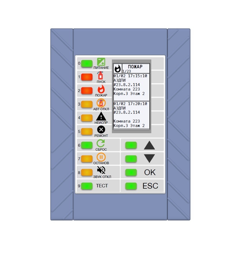 Блок индикации и управления. Объектовый пульт управления «БИC-М3 Рубикон» обеспечивает отображение состояний областей и управление ими, выдает тревожные сообщения на дисплей. Имеет клавиатуру, графический дисплей и встроенную звуковую сигнализацию. Предусмотрена авторизация пользователя по Proximity-карте HID или EM-Marin, интерфейс связи с ППК — RS-485. В качестве расширения к БИС-М3 может подключаться блок индикации и управления БИС-М1.я.Графический интерфейс)