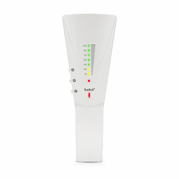 Измеритель уровня радиосигнала. Полоса рабочих частот 868 МГц. Измерение уровня радиосигнала в месте монтажа устройства ABAX 2. Два режима работы для измерения уровня: сигнала, получаемого измерителем от контроллера и сигнала, получаемого контроллером от измерителя. Возможность проверить уровень «радиошумов» на 4 каналах системы ABAX 2; светодиоды, отражающие выбор режима работы и радиоканала; светодиодный индикатор уровня радиосигнала; светодиоды, сообщающие о выбранном режиме работы; встроенный пьезоэлектрический преобразователь для звуковой сигнализации; встроенный незаменяемый аккумулятор; контроль состояния аккумуляторной батареи. Габаритные размеры 68x194x32 мм. Диапазон рабочих температур 0°C…+55°C.