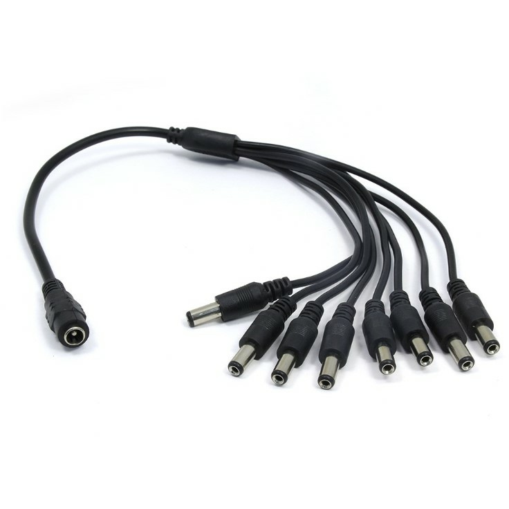 Разветвитель питания «1-8» Соединительный кабель для разветвления линии питания 1 гнездо (внутренний контакт 2,1х5,5 мм) на 8 штекеров (2,1х5,5 мм). Длина … м.