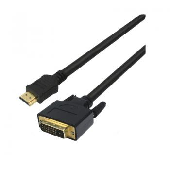 Кабель соединительный HDMI-DVI. Максимальная скорость передачи 3,4Гбит/с, максимальное разрешение 2560x1600 (Dual link). Круглое сечение. Тип разъёмов: HDMI(А) (19 pin) штекер, DVI (24+1) штекер, позолоченные контакты. Сечение жил 26AWG, тройной экран. Длина 15м. Цвет чёрный.
