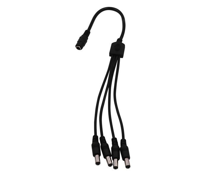 Соединительный кабель для разветвления линии питания (1 гнездо DC на 4 штекера DC), позволяет подключить к одному блоку питания несколько камер или микрофонов. Материал изготовления кабеля - ABS пластик, силикон, медь.
