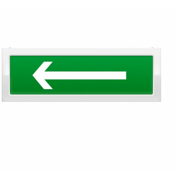 Оповещатель охранно-пожарный световой (информационное табло). Надпись: "стрелка влево", фон зеленый. Ток потребления светового оповещателя, мА, не более: 20. Напряжение питания (в зависимости от исполнения): 12 В DC. Степень защиты оболочки: IP41. Масса, кг, не более: 0.19. Ширина, мм, не более: 300. Высота, мм, не более: 100. Глубина, мм, не более: 20. Гарантийный срок эксплуатации, мес, не более: 36. Средний срок службы, лет: 10. Диапазон рабочих температур, °С: от -40 до +55