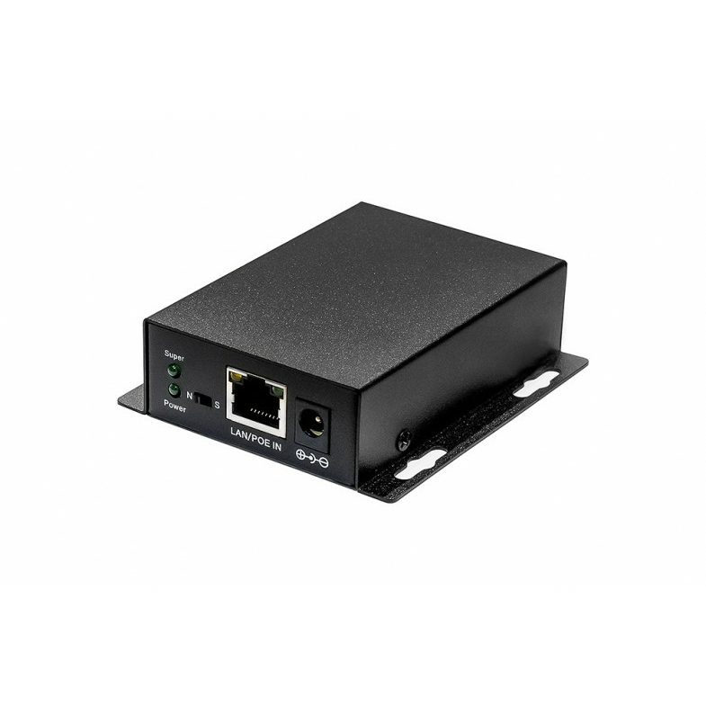 PoE удлинитель 10M/100M Fast Ethernet на 400м (до 30W).Увеличение расстояния передачи данных + питание на 100м (В режиме "S" - до 400м). Совместим с оборудованием PoE IEEE 802.3af/at. Порты: вх.- 1 x RJ45 (10/100 Base-T), роз. 2.1x5мм DC; вых.- 1 x RJ45 (10/100 Base-T). Выходной порт имеет возможность выбора метода подачи PoE (A, B, A+B).2 способа получения питания: от источника PoE/ от блока питания через DC разъем). Питание: DC12-56V(30W). Размеры (ШxВxГ): 88x25x60мм. Рабочая температура: -10...+55 гр. С.