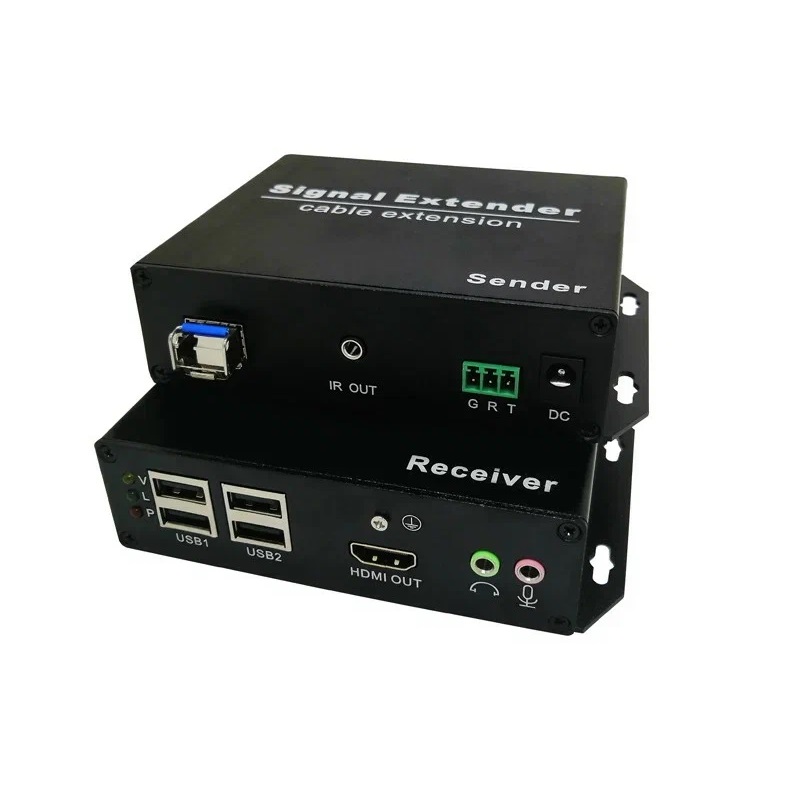 HDMI+USB удлинитель по сети оптическому волокну с поддержкой передачи ИК, Audio, RS232. Разрешение видео - 4K(60Гц). HDMI 2.0, 3D. Встроенный USB2.0 концентратор. Двунаправленная передача аудио и RS232. Поддержка работы в режимах " Точка - точка" и "Точка - мультиточка". Порты подключения передатчика: HDMI - 2шт, Оптический порт - SFP, USB Type B - 1шт, Audio - Jack 3,5мм, ИК - Jack 3,5мм, RS232 - DB9. Порты подключения приемника: HDMI - 1шт, Оптический порт - SFP, USB Type A - 4шт, Audio - Jack 3,5мм, ИК - Jack 3,5мм, RS232 - DB9. Питание - DC12V. Комплектация: передатчик, приемник, блок питания DC12V - 2шт, HDMI-Кабель,ИК-Передатчик, ИК-Приемник, адаптер 3-pin-DB9 - 2шт, USB-кабель, Аудио-кабель. Размеры каждого устройства (ШxВxГ): 131 x 32 x 93 мм. Рабочая температура -15…+55°С.