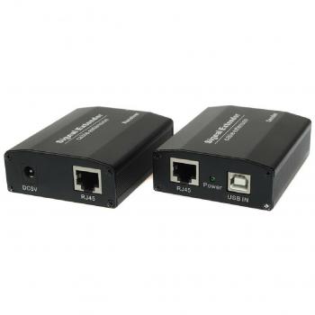 Удлинитель интерфейса USB 2.0 по кабелю витой пары (CAT5e/6) до 50м. Подключение устройств в режиме "Plug and Play". Приемник: Вх.-USB(A)x4/Роз.2,1х5,5мм(DC5V). Вых.-RJ45. Передатчик: Вх.-USB(B). Вых.-RJ45.В комплекте БП для приемника DC5V(1A)-1шт. Размеры передатчика и приемника (ШхВхГ): 64x25x79мм. Вес: 0,1 кг. Рабочая температура: 0...+55°C.