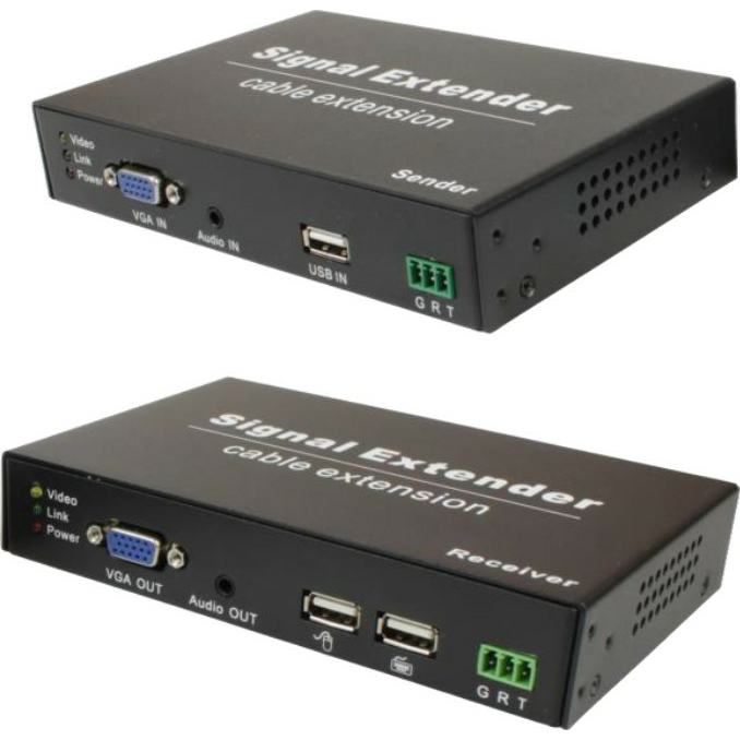 TA-VKMDA+RA-VKMDA Комплект для передачи VGA, USB, RS232 и аудио по кабелю витой пары до 120м. Максимальное разрешение сигнала до 1920x1080(60Гц). Порты USB предназначены только для подключения клавиатуры и мыши. Передатчик: Вх.-VGA/USB(A)/TRS3.5мм(Audio)/RS232/Роз.2,1x5,5мм(DC12V). Вых.-RJ45. Приемник:Вх.-USB(A)x2/RJ45/Роз.2,1x5,5мм(DC12V). Вых.- VGA/TRS3.5мм(Audio)/RS232. В комплекте БП DC12V(1А)-2шт, VGA кабель, USB кабель, аудио кабель, RS232(3-pin-DB9) кабель-2шт. Размеры каждого устройства: (ШxВxГ):157x30x105мм. Вес каждого устройства: 0,45кг. Рабочая температура: -15…+55°С.