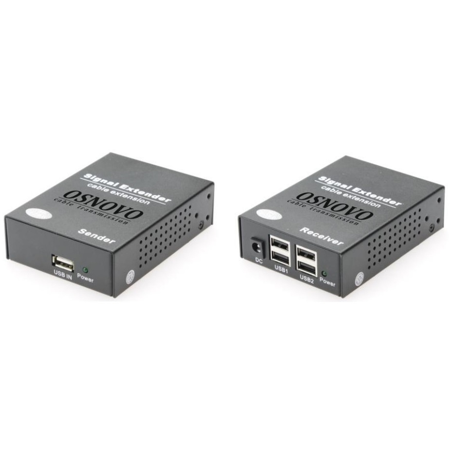 Удлинитель интерфейса USB 2.0 по сети Ethernet. Расстояние передачи "точка-точка" по кабелю витой пары (CAT5e/6) до 150м. Подключение устройств в режиме "Plug and Play". Передатчик: Вх.-USB(A), Вых.-RJ45. Приемник: Вх.-RJ45/Роз. 2,1х5,5мм(DC12V). Вых.-USB(A)x4. В комплекте БП DC12V(1,5A)-1шт. Размеры передатчика и приемника (ШхВхГ): 75x29x103 мм. Вес: 0,24 кг. Рабочая температура: 0...+55°C.