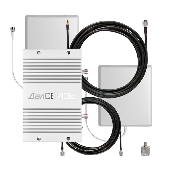 Комплект - минимальный набор оборудования с репитером мощностью 200 мВт для усиления сигнала сотовой связи в стандартах GSM1800, 3G UMTS2100, 4G LTE1800.