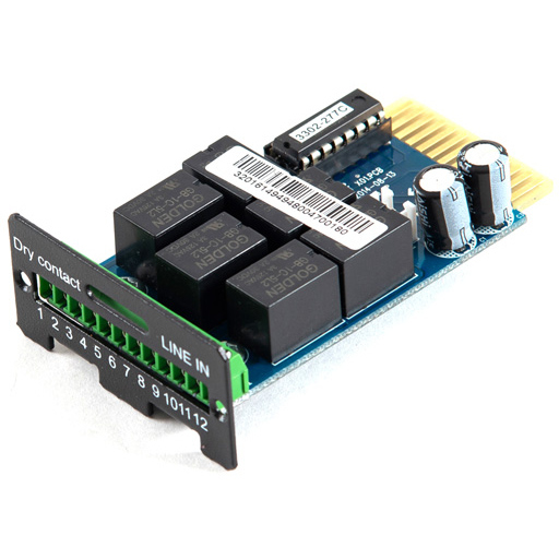 Релейный модуль для SKAT UPS 1000 RACK и SKAT UPS 3000 RACK. Модуль преобразует внутренние сигналы ИБП в формат «сухой контакт реле», обеспечивает возможность дистанционного отключения ИБП и внешнего мониторинга состояния электросети и ИБП по шести основным параметрам. Тип контактов - клеммная колодка. Количество клемм - 12.