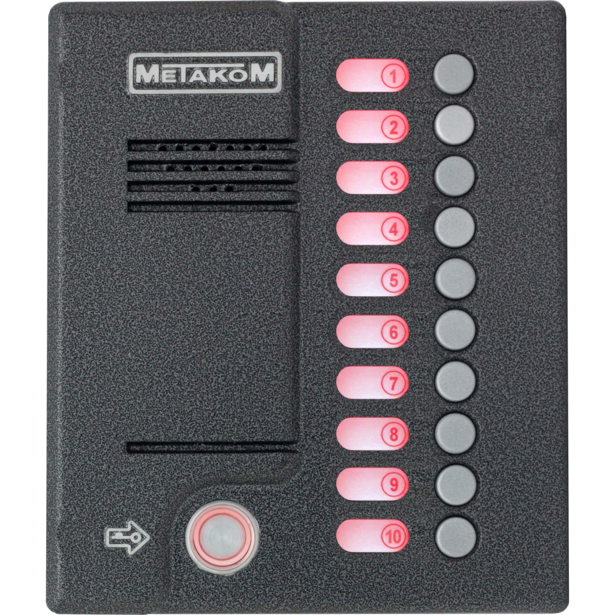 Антивандальный блок вызова прямой адресации МЕТАКОМ MК10.2-TM4EN, возможность работы в сети, ёмкость 10 абонентов, контроллер Touch Memory (ключи типа ТМ2002, ТМ2003, ТМ2004, DS1990A). Подсветка номера абонента. Рассчитан на работу с электромагнитным замком. Габариты: 183Х156х38.