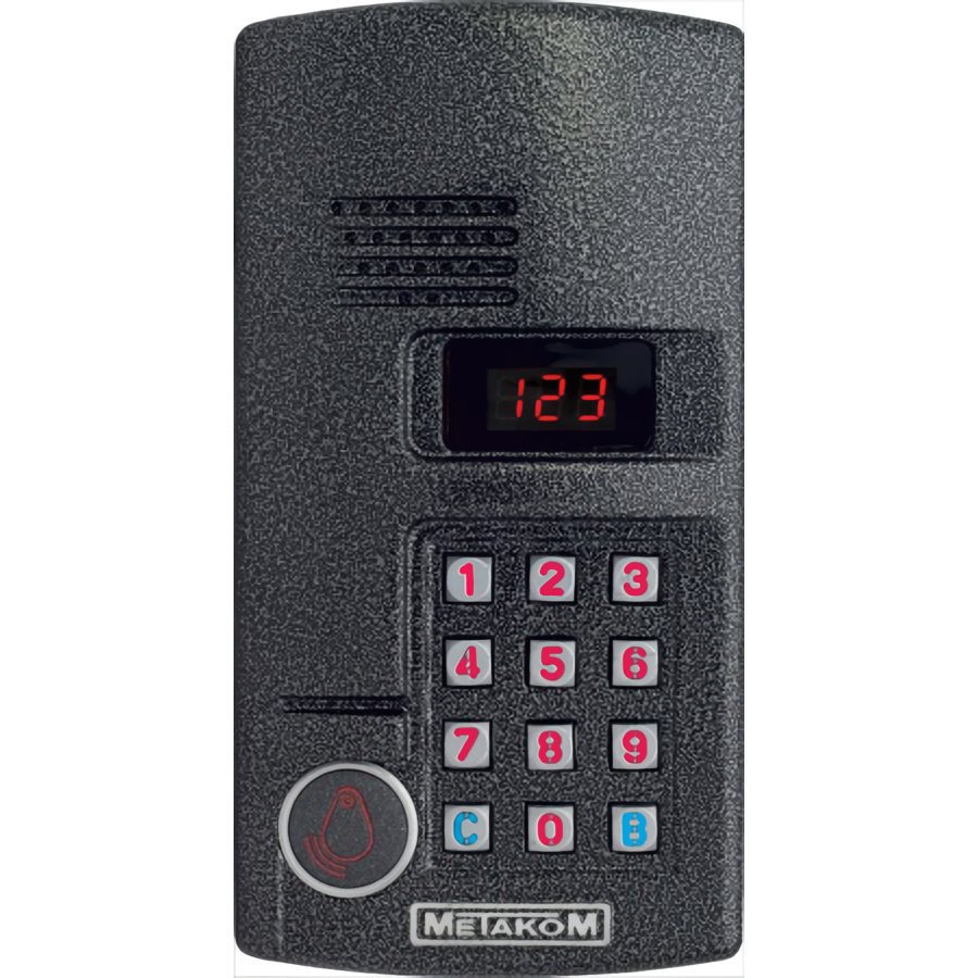 Многоабонентный антивандальный блок вызова МЕТАКОМ MK2003.2-RFE, емкость абонентов до 999 (при использовании нескольких коммутаторов), работа с бесконтактными брелками proximity, стандарт EM-marine. Рассчитан на работу с электромагнитным замком. Габариты: 215Х115х45мм.