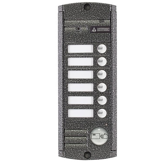 4-х проводная антивандальная накладная видеопанель, 6-ти абонентная со встроенным Proxy считывателем. В корпусе цвета антик с ИК подсветкой до 0,6м. Матрица 1/3", разрешение 1000 ТВл, 12В, угол обзора 75 (гор.) 55 (верт.); рабочий диапазон t - 30… + 55; габариты 185х70х20 мм.