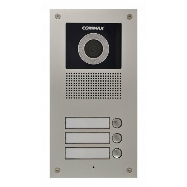 Вызывная цветная видеопанель на 3 абонента, антивандальный металлический корпус, встроенная видеокамера высокого разрешения 540 ТВЛ, угол обзора по горизонтали 75°, вертикали 55°, управления замком, врезная установка, размеры: 142 х 248 х 37мм