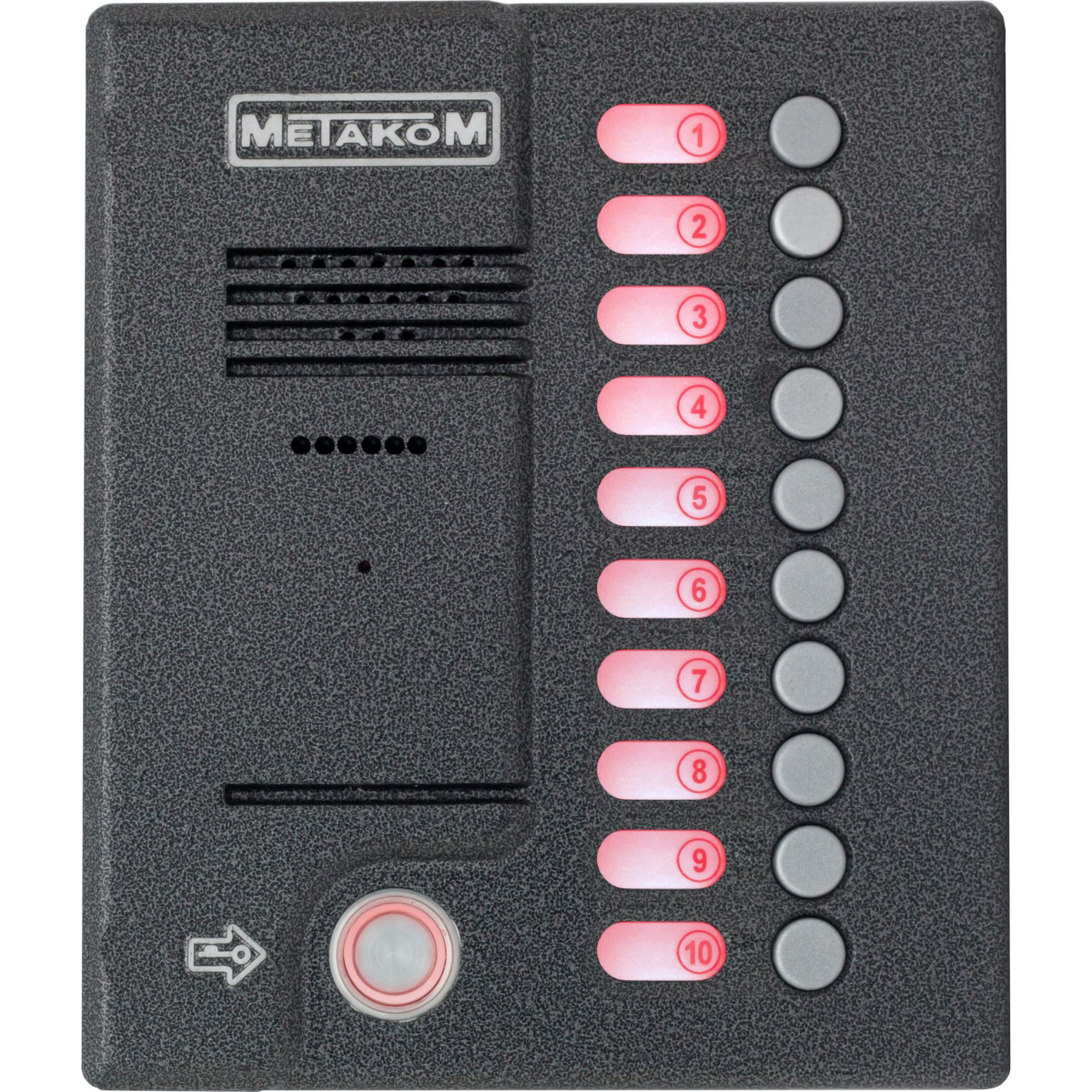 Антивандальный цветной блок вызова со встроенной видеокамерой МЕТАКОМ M10.2-TM4EV прямой адресации, ёмкость 10 абонентов, контроллер Touch Memory (ключи типа ТМ2002, ТМ2003, ТМ2004, DS1990A). Подсветка номера абонента. Рассчитан на работу с электромагнитным замком. Габариты: 183Х156х38.