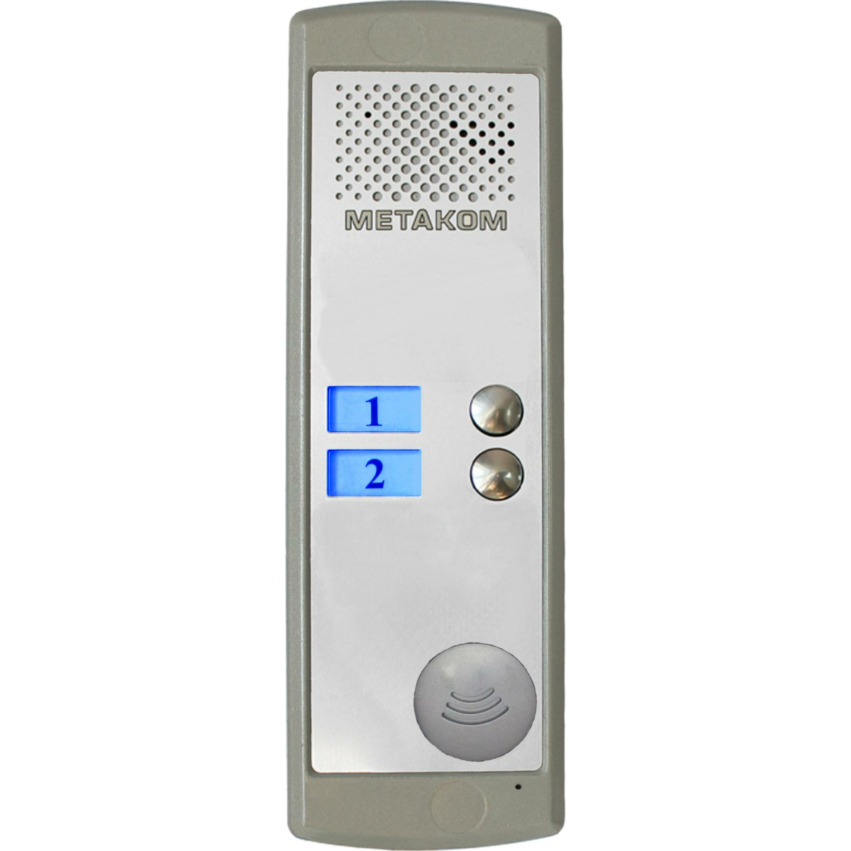 Двухабонентный блок вызова с системой адресации стандарта Commax со встроенной видеокамерой. Оборудован встроенным контроллером и считывателем бесконтактных ключей MF136P (частота 13,56 мГц). Тип корпуса: накладной.
