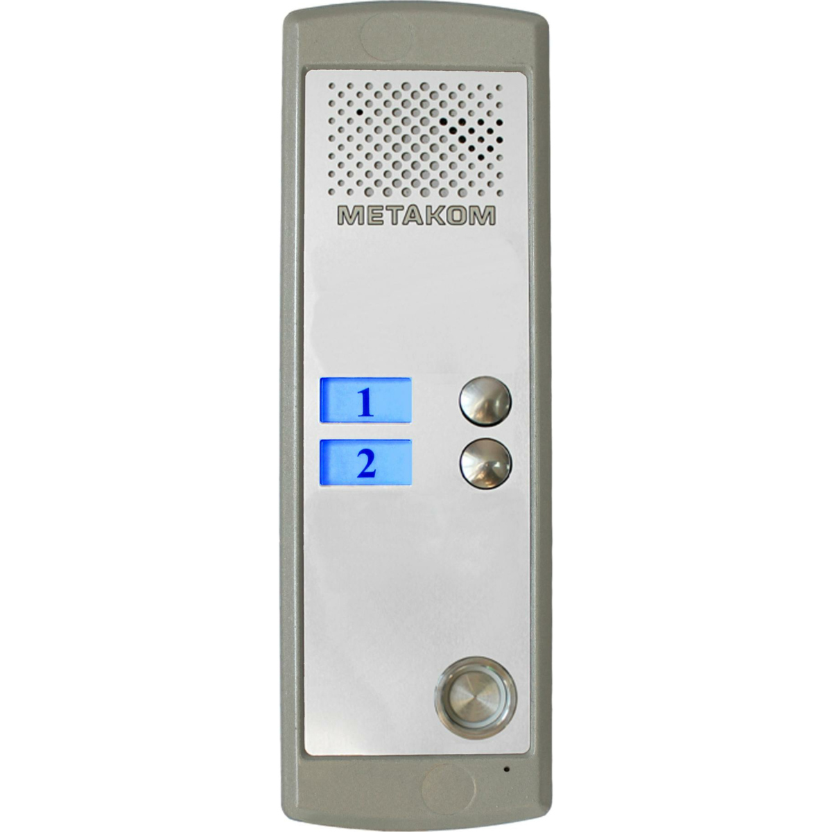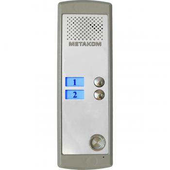 Двухабонентный блок вызова с системой адресации стандарта Commax со встроенной видеокамерой. Оборудован встроенным считывателем и контроллером ключей METAKOM TM2003, Dallas DS1990A. Тип корпуса: накладной.