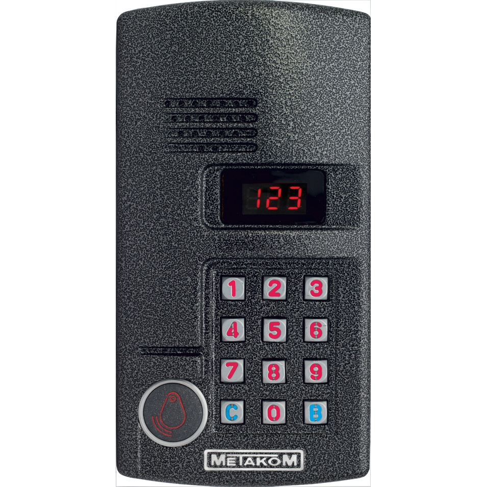 Многоабонентный антивандальный цветной блок вызова со встроенной видеокамерой МЕТАКОМ MK2003.2-RFEVN, емкость абонентов до 999 (при использовании нескольких коммутаторов), работа с бесконтактными брелками proximity, стандарт EM-marine. Возможность организации домофонной сети типа 1 Master / 16 Slave (один основной вход, 16 дополнительных), индивидуальный/общий код. Рассчитан на работу с электромагнитным замком. Габариты: 215Х115х45мм.